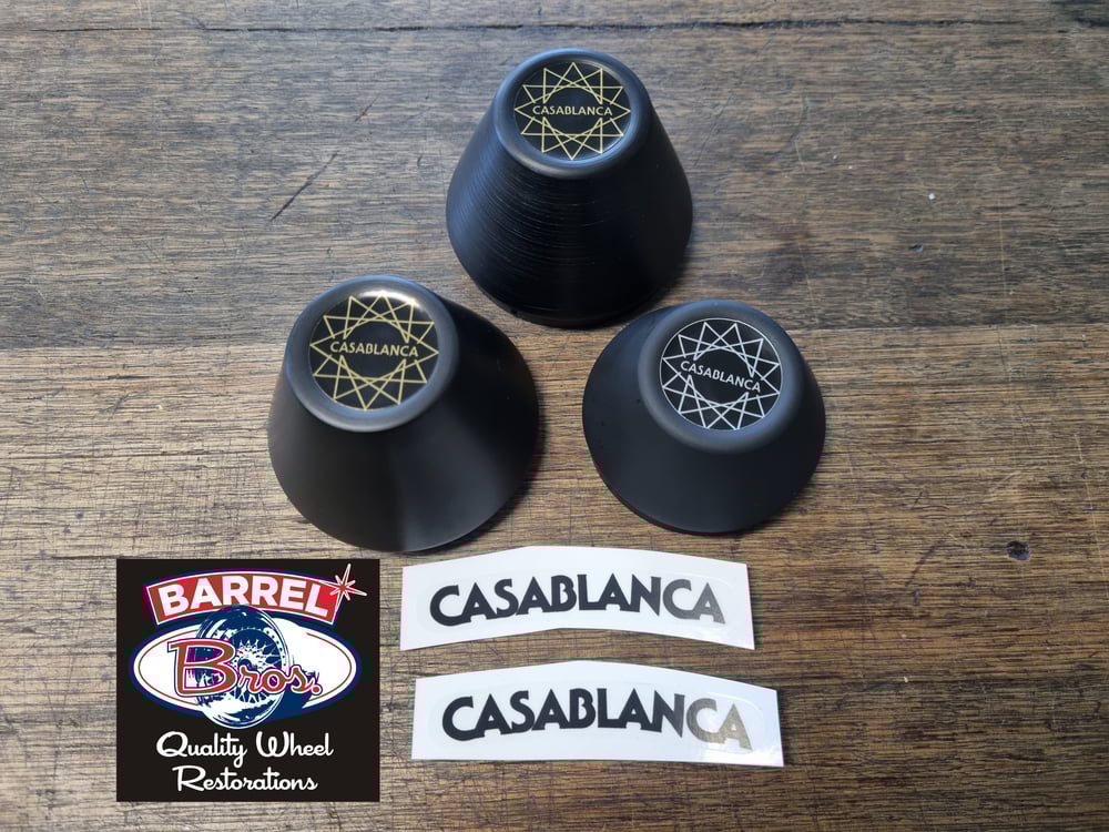 Faithfully recreated centre caps to suit Casablanca Mesh wheels with a 71mm centre bore, or Casablanca Eight with a 64mm centre bore.